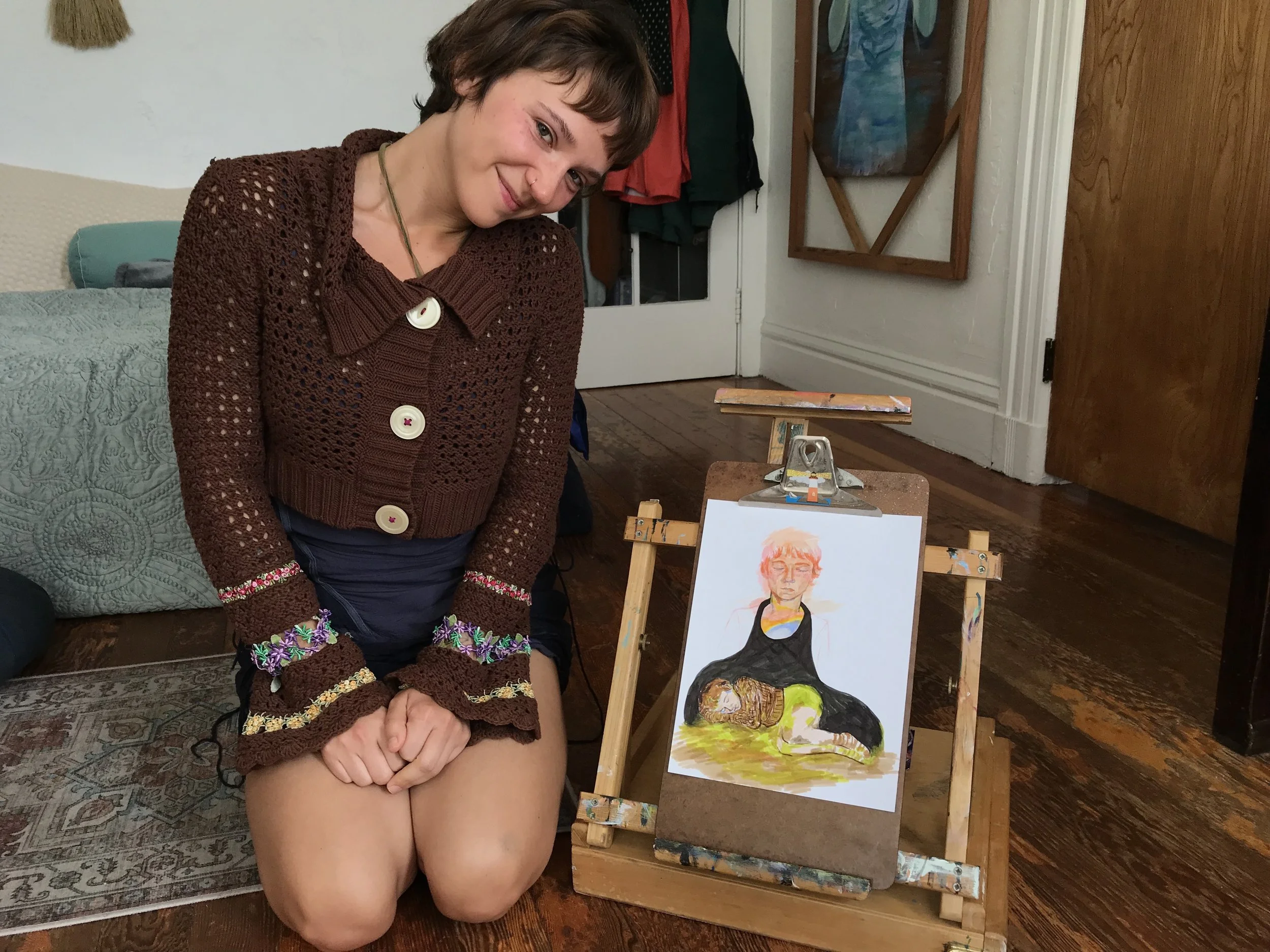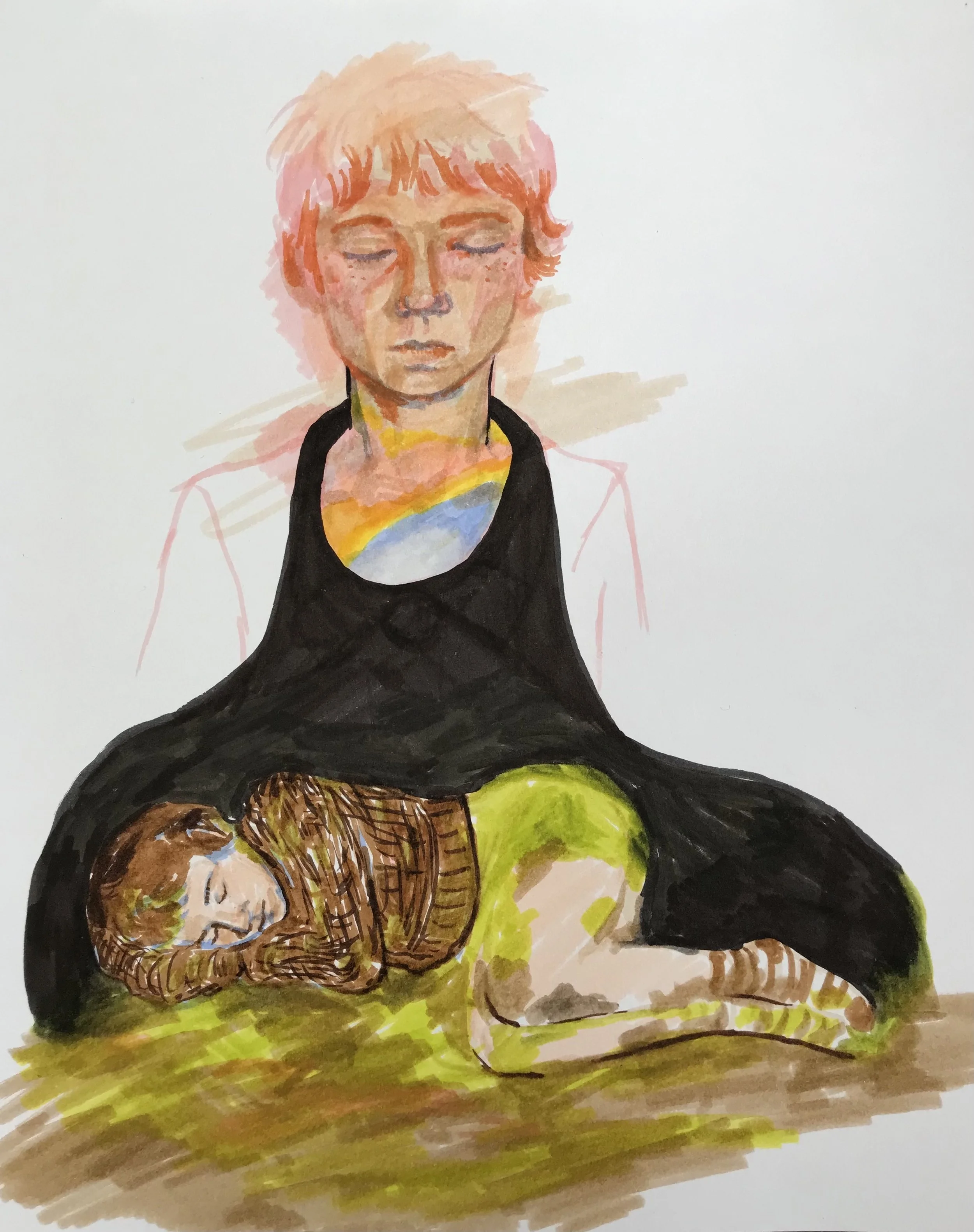 One of the strongest themes that emerged was around considering her future self when she makes decisions. This drawing brings a tangible quality to the understanding that we will become someone. Our future self already exists and we can be a friend or foe to her well-being. A song to illustrate: